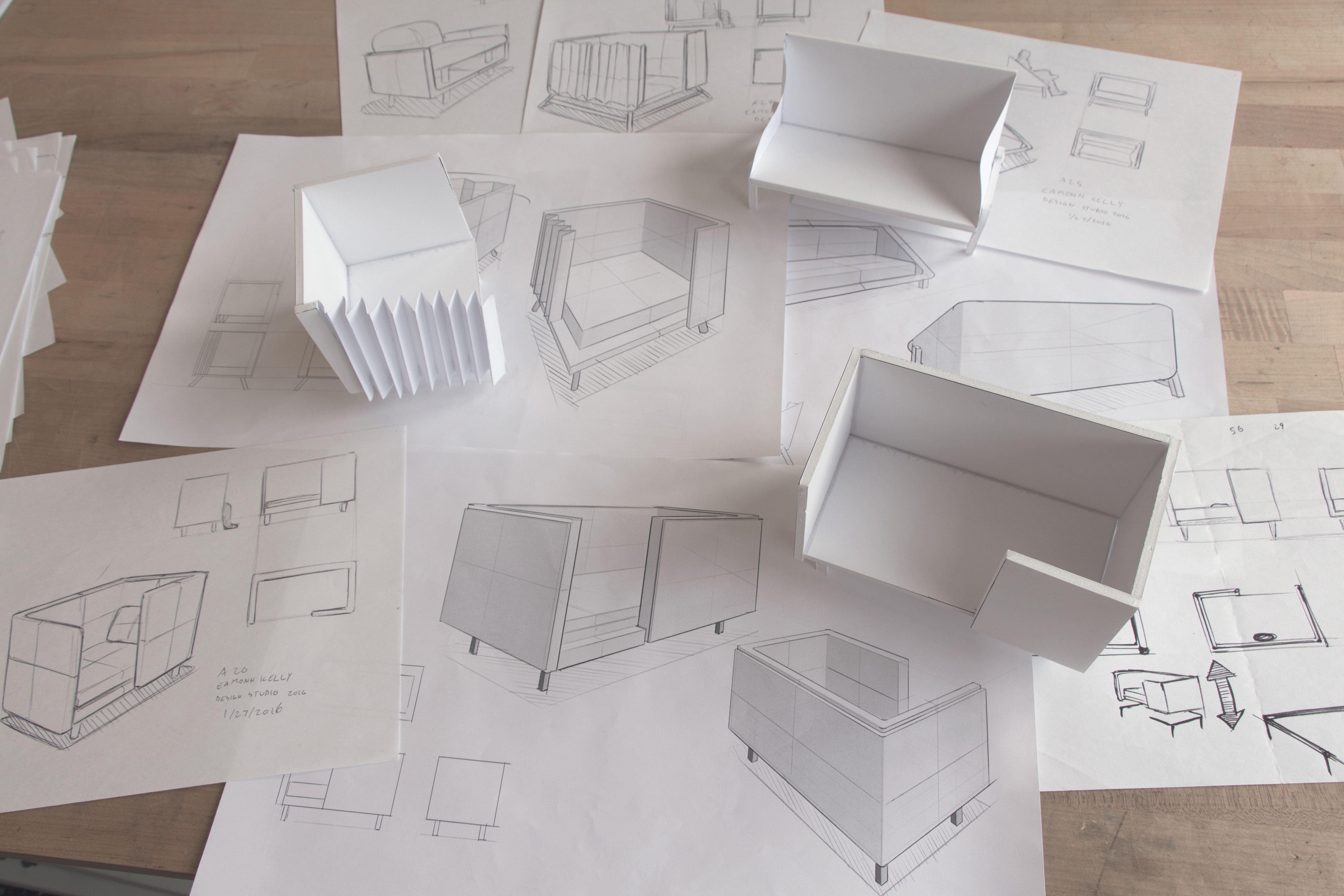 Ideation focused on sketches to sort through constraints. Simple orthographics and models helped refine possibilities.